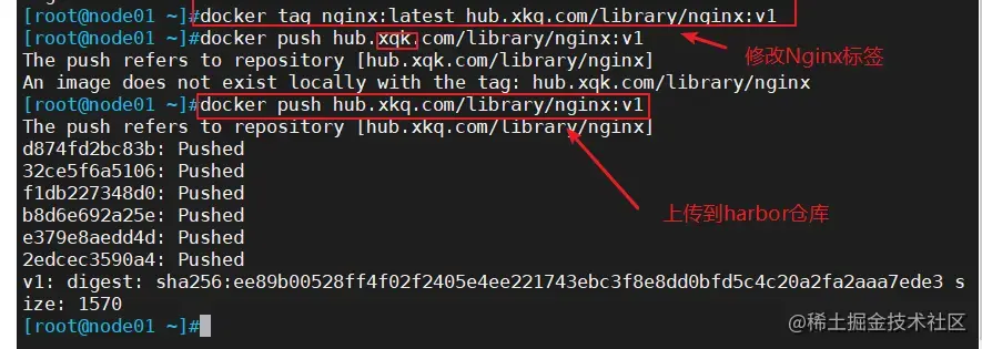 docker tag nginx:latest hub.xkq.com/library/nginx:v1