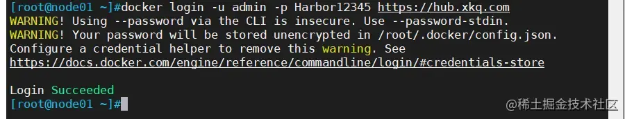 docker login -u admin -p Harbor12345 https://hub.xkq.com