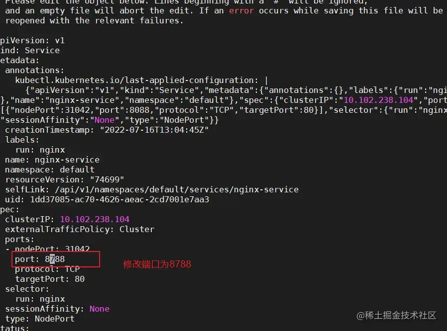在线编辑资源配置清单并保存退出即时生效(如port:888)