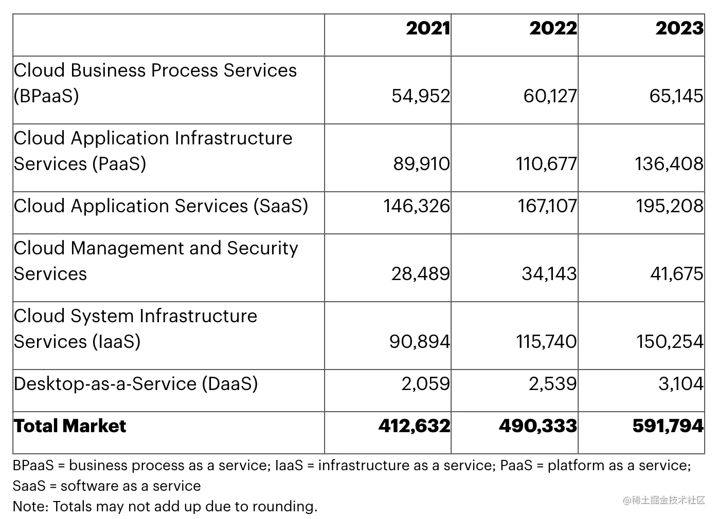 据 Gartner 预测,到 2023 年,全球终端用户在公有云服务上的支出预计将从 2022 年的 4903 亿美元增长 20.7% 至 5918 亿美元。基础设施即服务 (IaaS) 预计将在 2023 年实现最高的终端用户支出增长 29.8%。同时预计所有公有云服务下的各类细分市场都将在 2023 年实现增长。