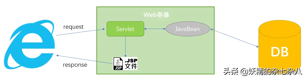 所有的业务逻辑交给jsp单独处理完成,一个web项目只存在DB层和JSP层,所有的东西都耦合在一起,对后期的维护和扩展极为不利。