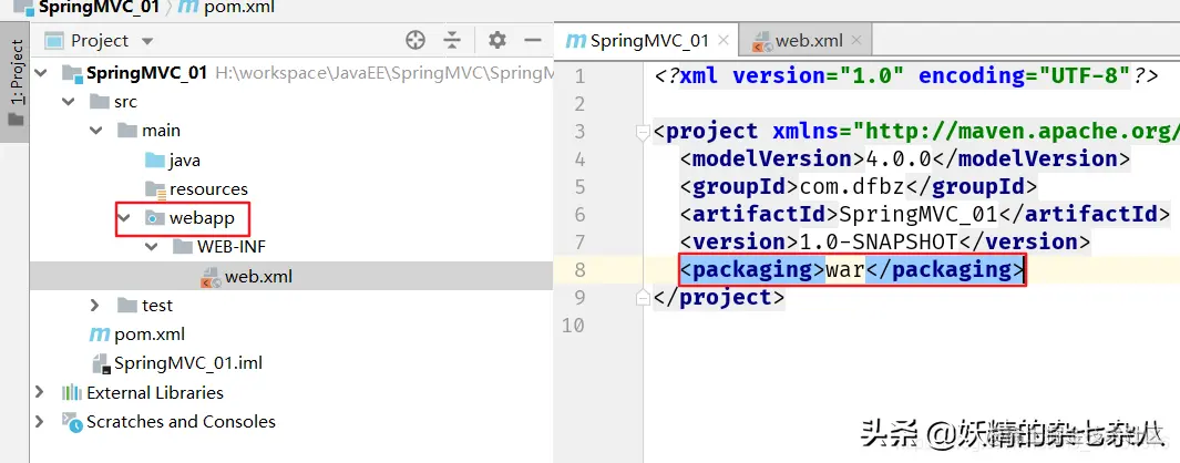 查看是否生成webapp目录和maven项目打包方式是否变为war