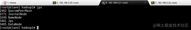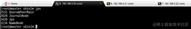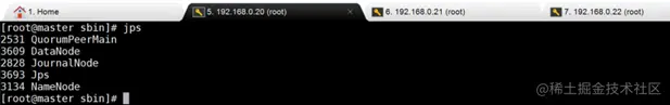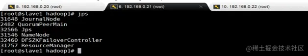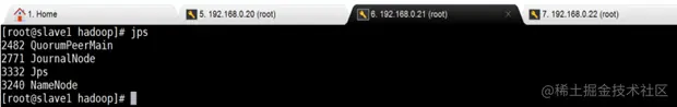 2) 使用命令: hadoop-daemon.sh start namenode 启动namenode 进程(master、slave1节点上执行)