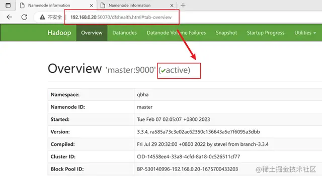 http://192.168.0.20:50070 此处192.168.0.20为namenode节点的Active节点