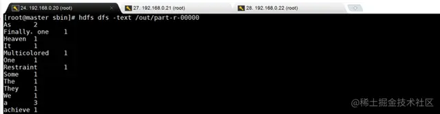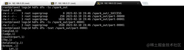 (3)从HDFS读取数据执行自定义wordcount代码,结果写入HDFS,命令: