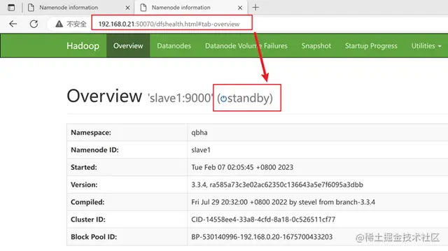 http://192.168.0.21:50070 此处192.168.0.20为namenode节点的standby节点