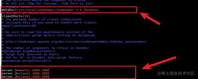 4) zookeeper的配置文件修改,zookeeper-3.4.10/conf/