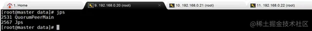 7) 每台机器上命令:zkServer.sh start ,启动ZK,进程名:QuorumPeerMain