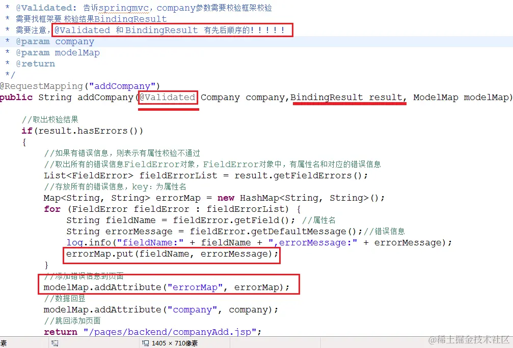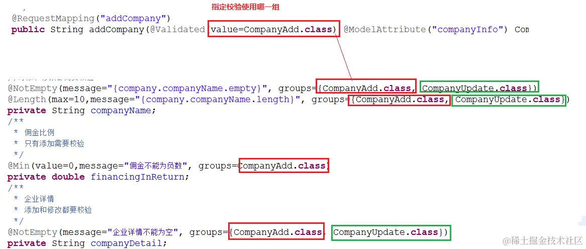 在Controller的方法中,需要告诉springmvc,形参Company company,需要使用校验框架做校验