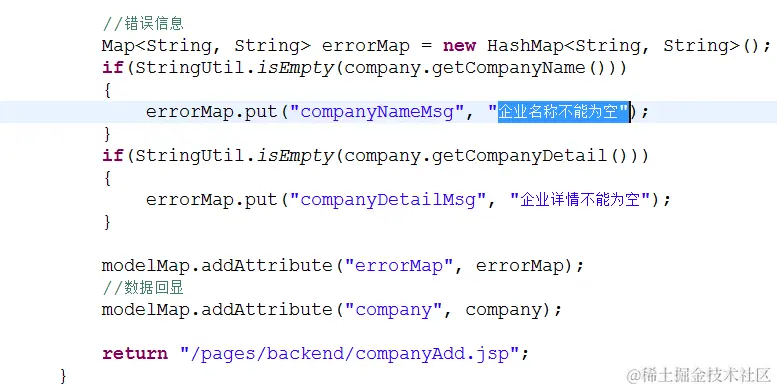 但是从用户的角度来说,校验不通过,一般回到添加页面,并且,原始数据有回显,然后有相依的错误信息提示
