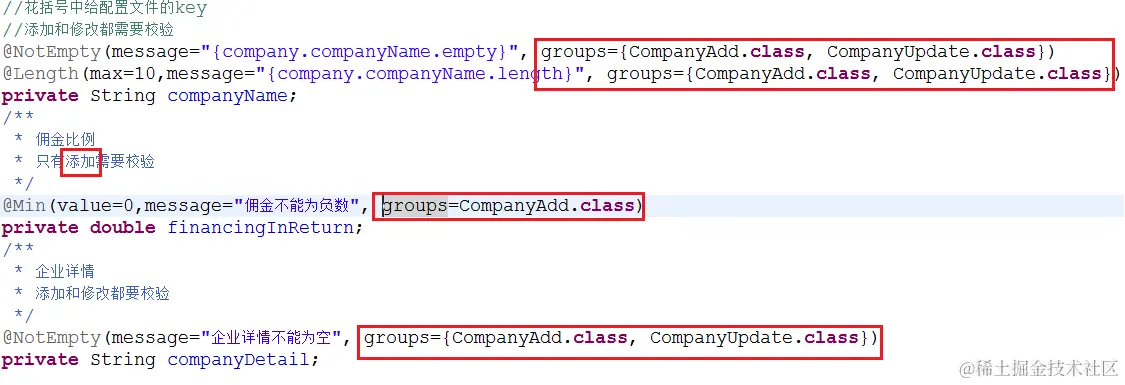 2)给实体类中的规则分组