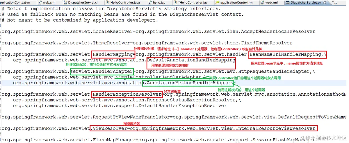 DispatcherServlet加载这个配置文件,主要的目的,就是实例化它的各种帮手。