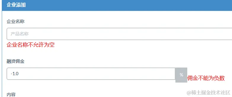 添加需要校验 企业名称、佣金、详情
