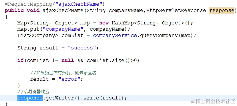 方法没有返回值,在方法中,使用response直接给页面响应