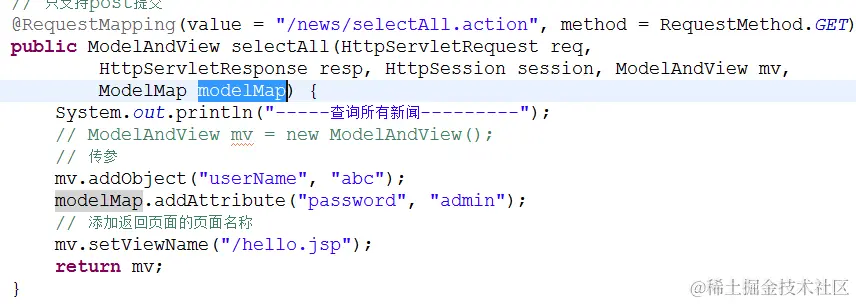 ModelAndView除了可以放view视图(jsp),还可以放model(数据)