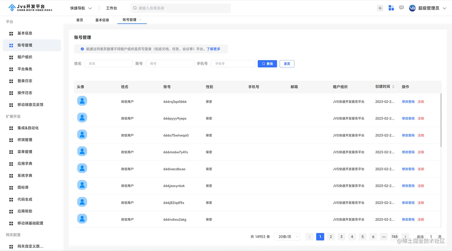 - 多租户功能,支持多租户功能,支持SaaS能力