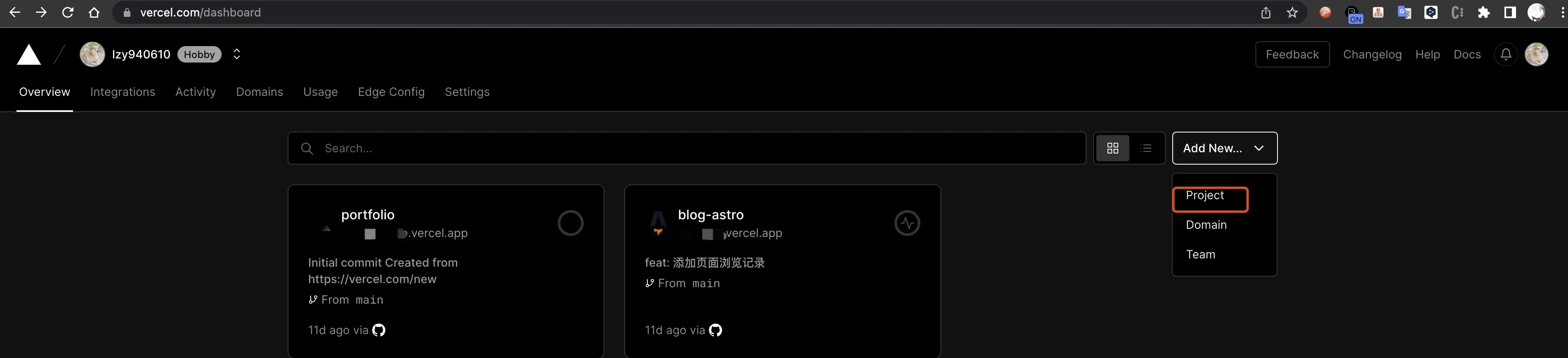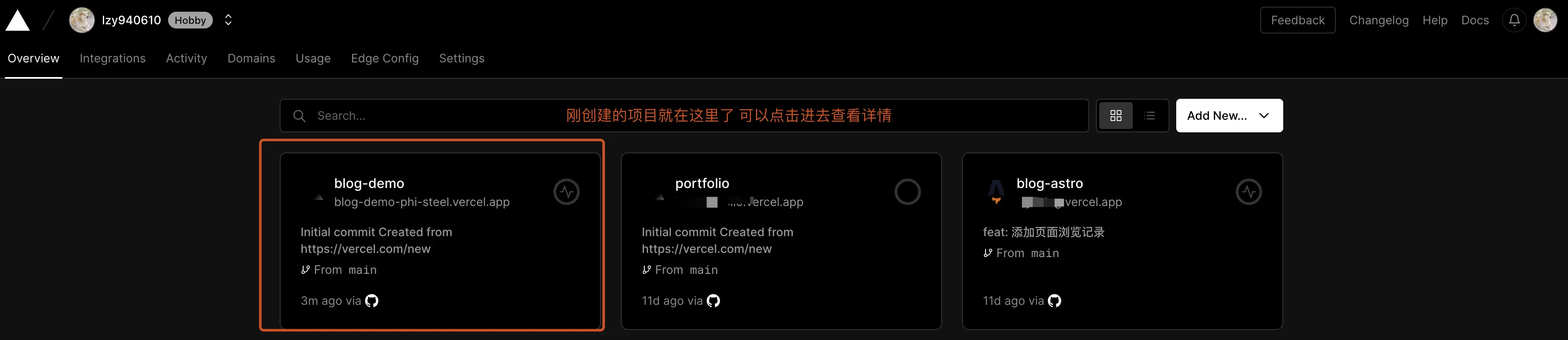 回到项目看板 vercel.com/