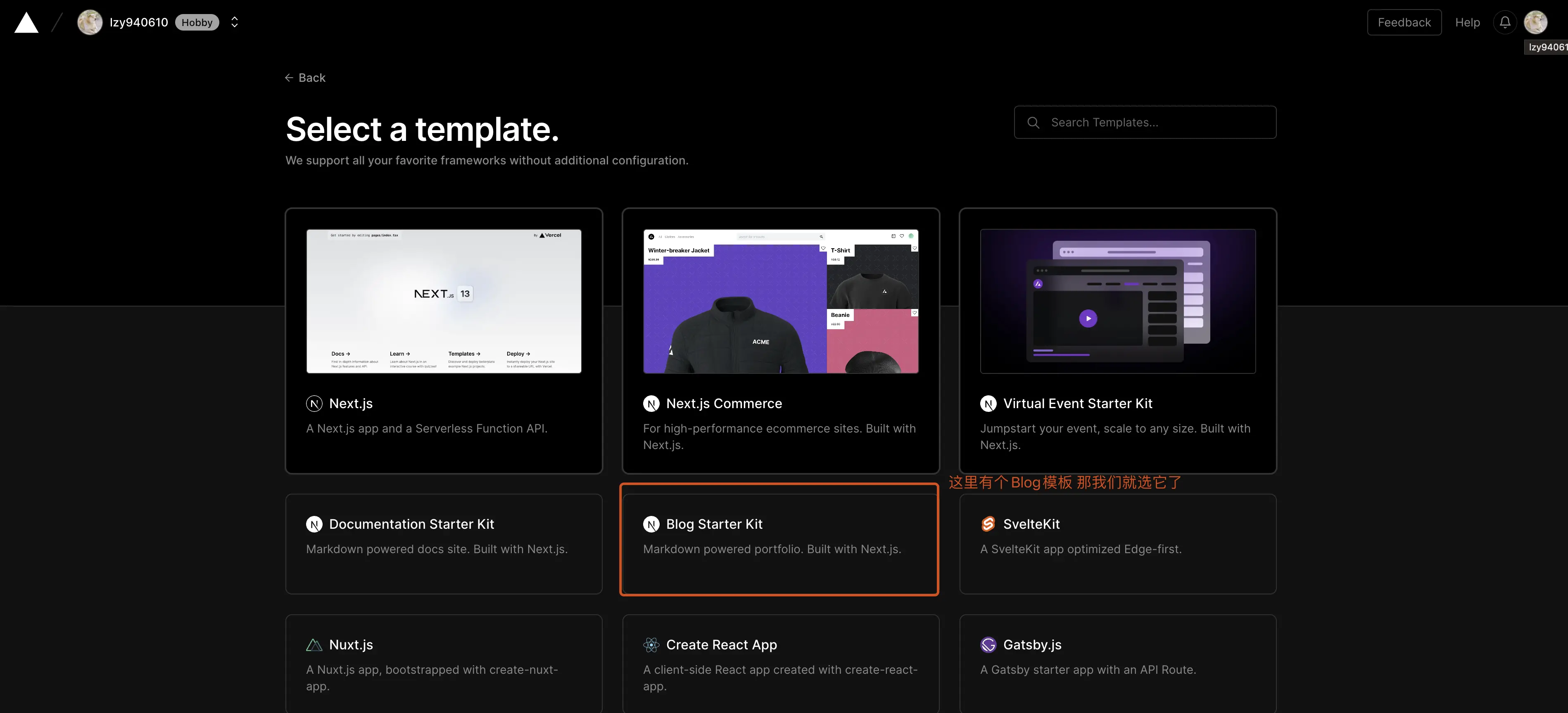 我选择了 Blog Starer Kit 模板