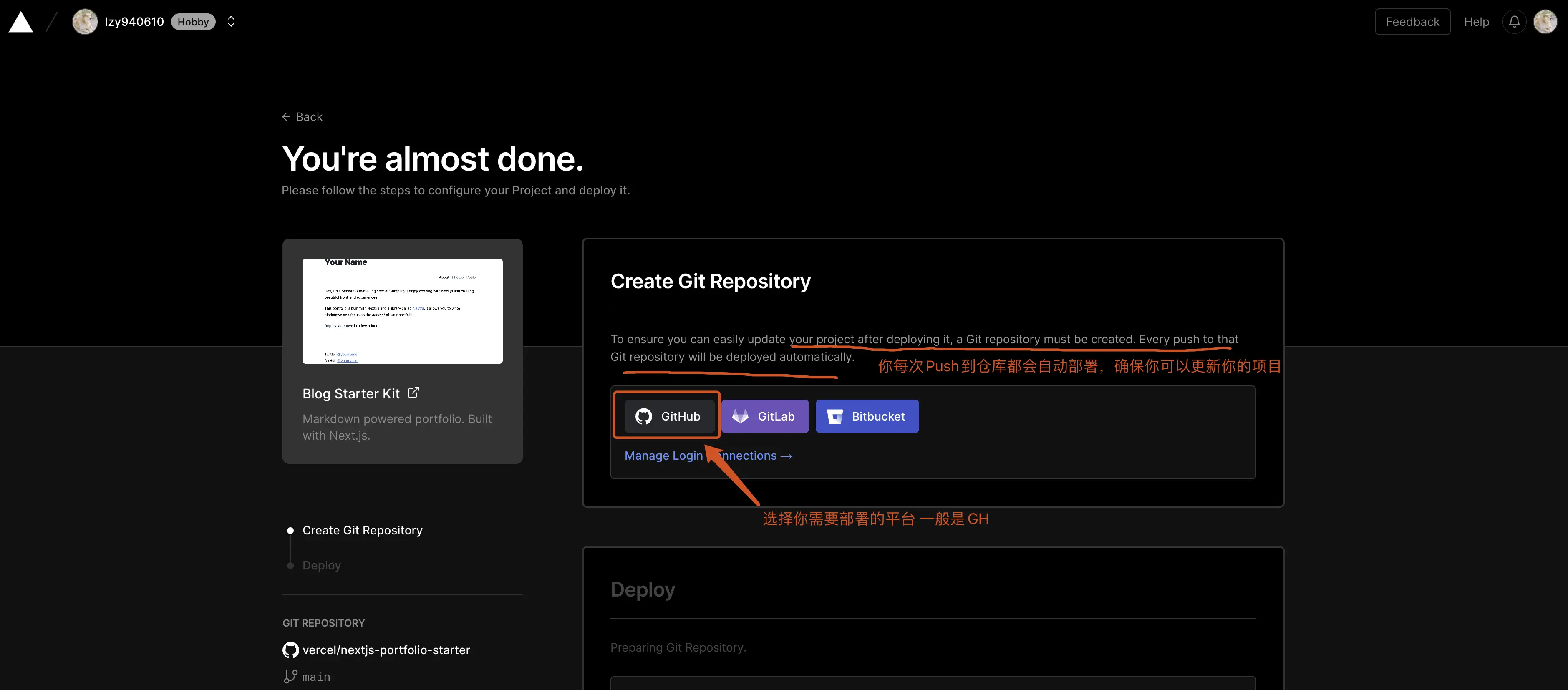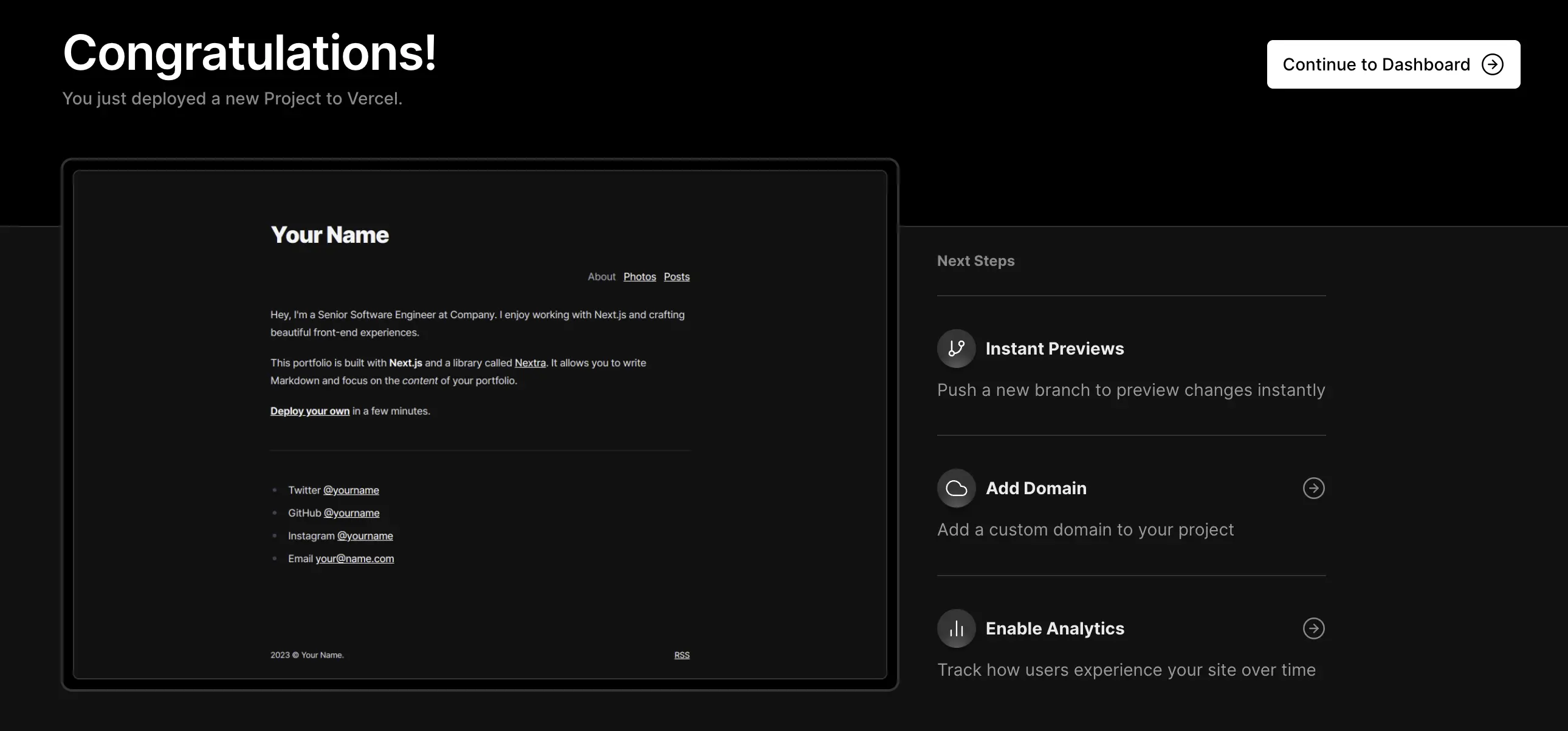 接下来,我们看如何在Vercel上创建你自己的应用到最后站点部署成功