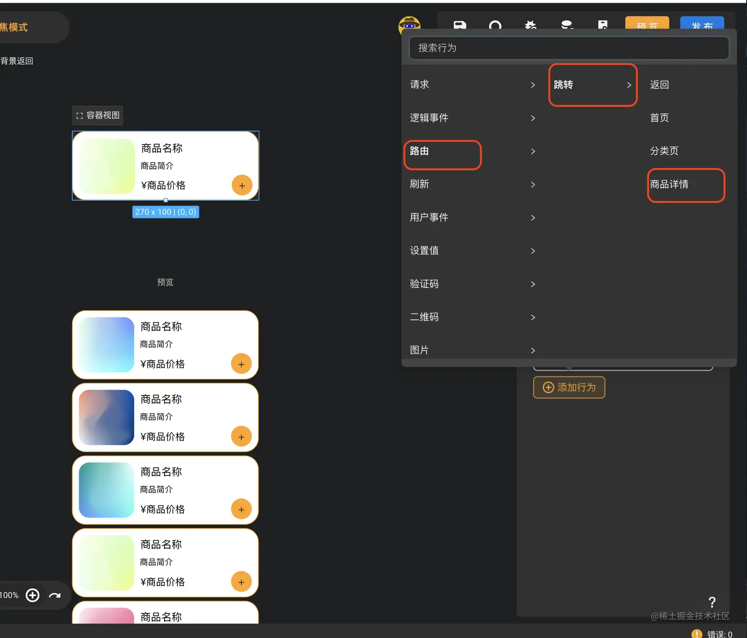 然后我们去列表容器视图项点击行为路由跳转商品详情页