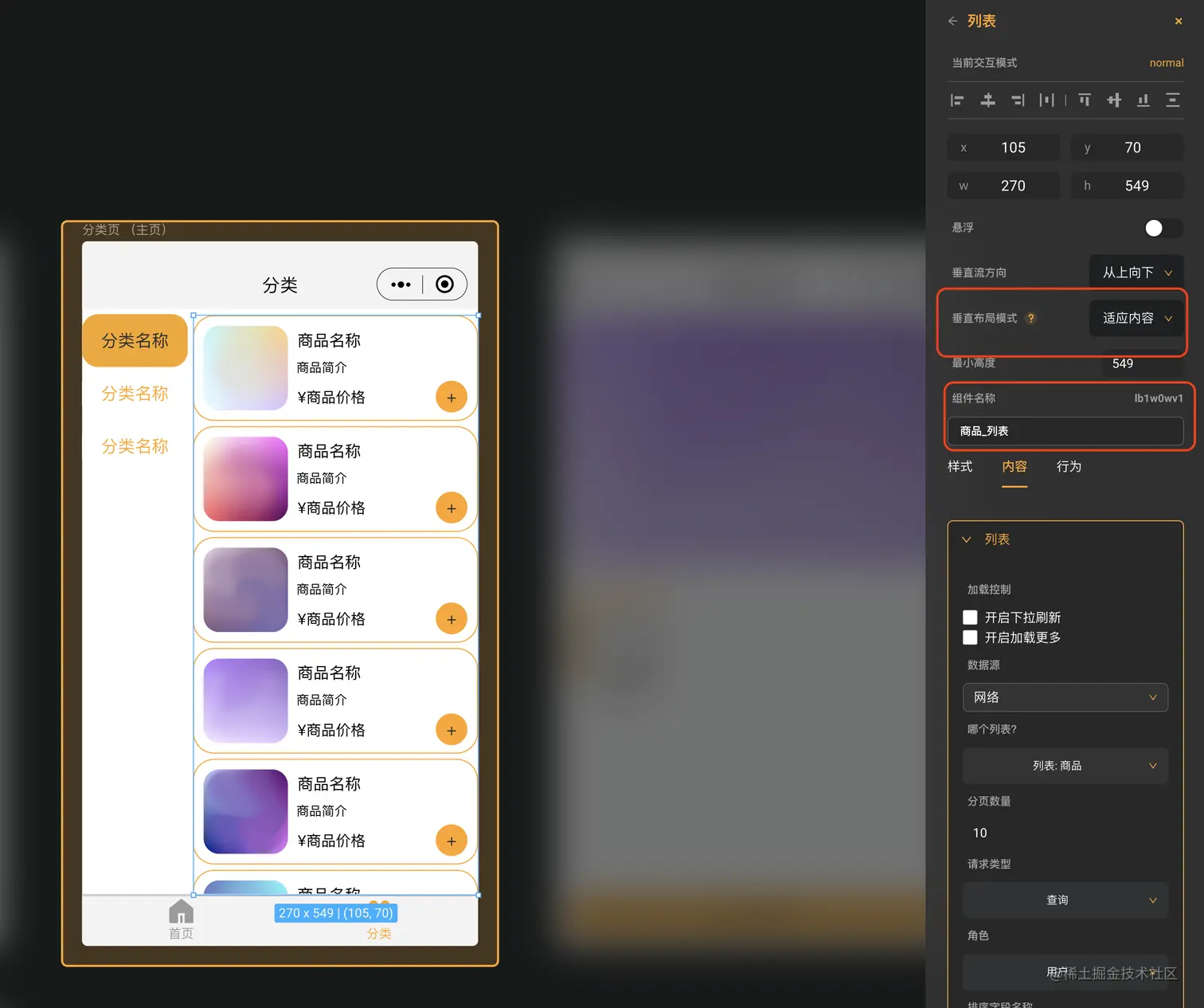 因为使用了适应内容所以加载可以关闭,过滤类型商品分类应等于选择视图的分类名称(因为在选择视图选择哪一类商品就要显示哪一类商品)