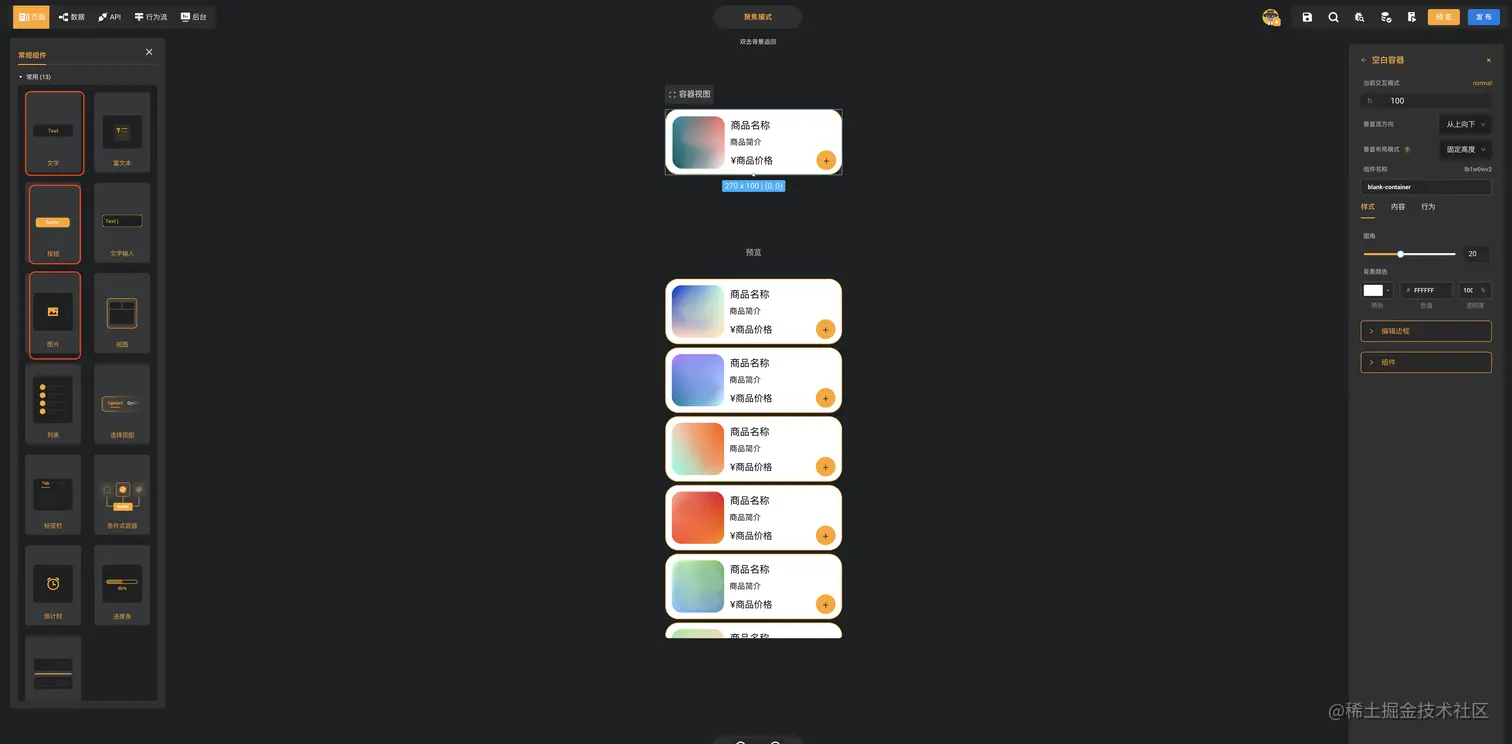 因为是自己做一个小场景所以不用着急先去构思数据模型而是通过拖拽来自己做一个低保真设计图。