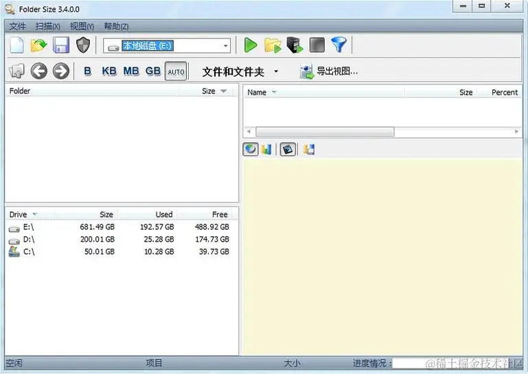 Folder Size是一个可以查看文件大小的软件,使用它可以一键查看文件夹里的文件大小。你可以选择整个C盘,也可以选择指定特定的文件夹。可以一键搜索占内存的大文件,还可以按照KB / MB / GB 的大小来筛选,同时它还是一个开源免费无毒的软件。