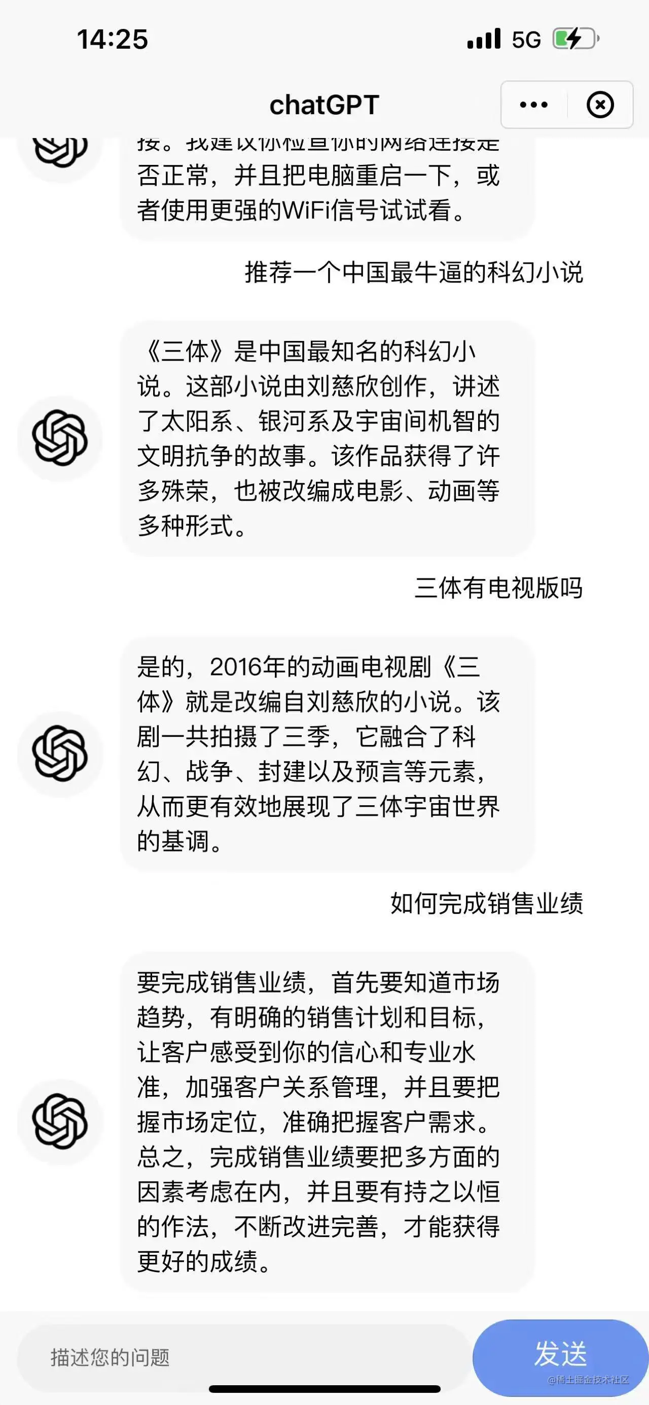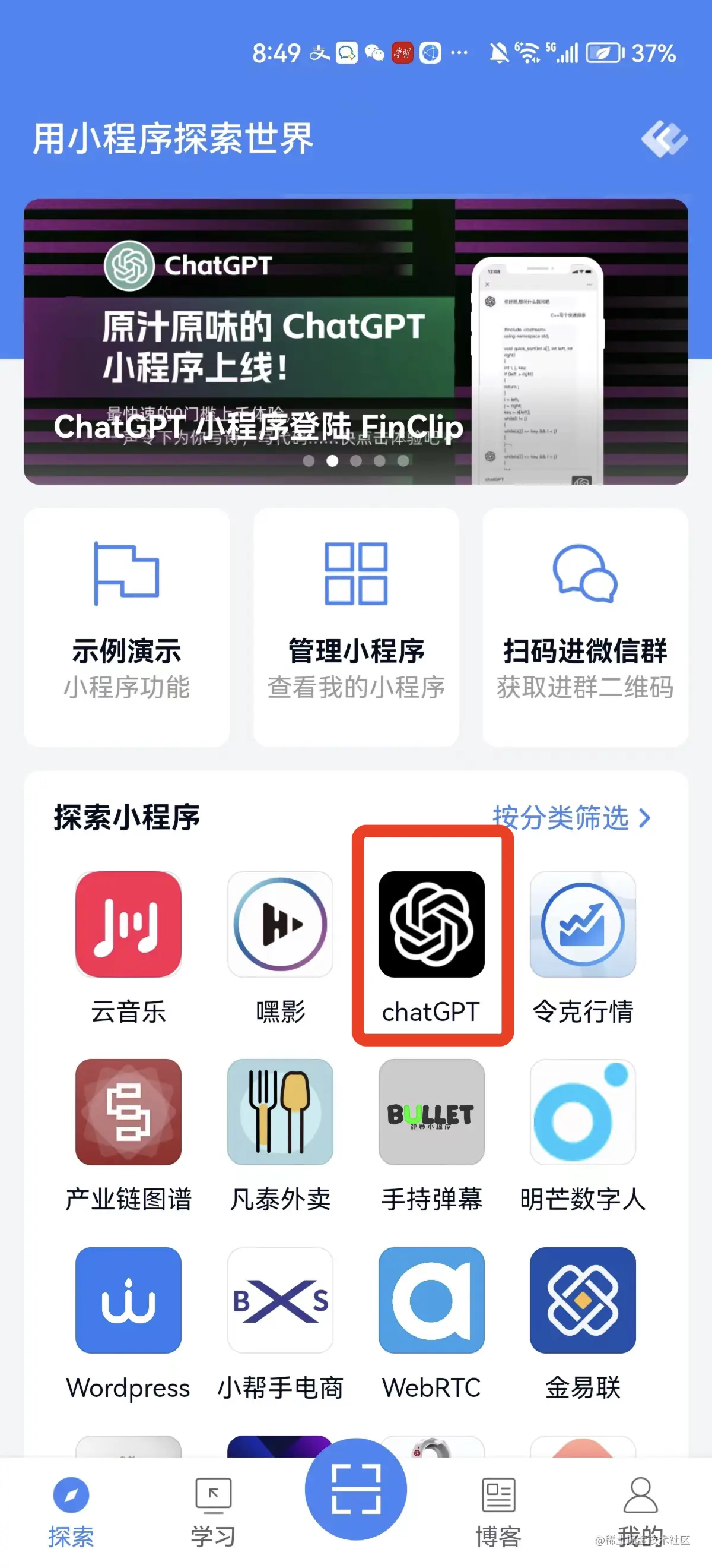 目前国内有很多号称ChatGPT的平台,真假难辨,作者在FinClip 小程序应用市场里,为大家找到一个靠谱的ChatGPT小程序版本。