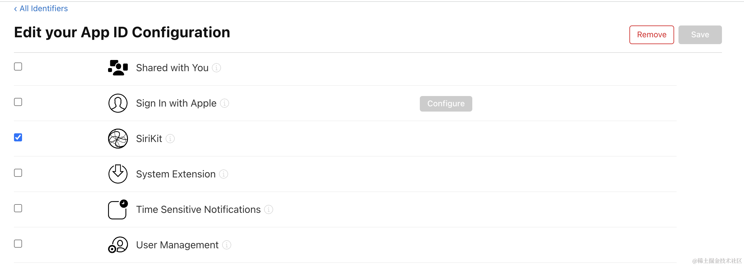 2、 对 SiriExtensionUI 也进行相同的配置, SiriExtensionUI 只需要配置 IntentsSupported ,调整后如下: