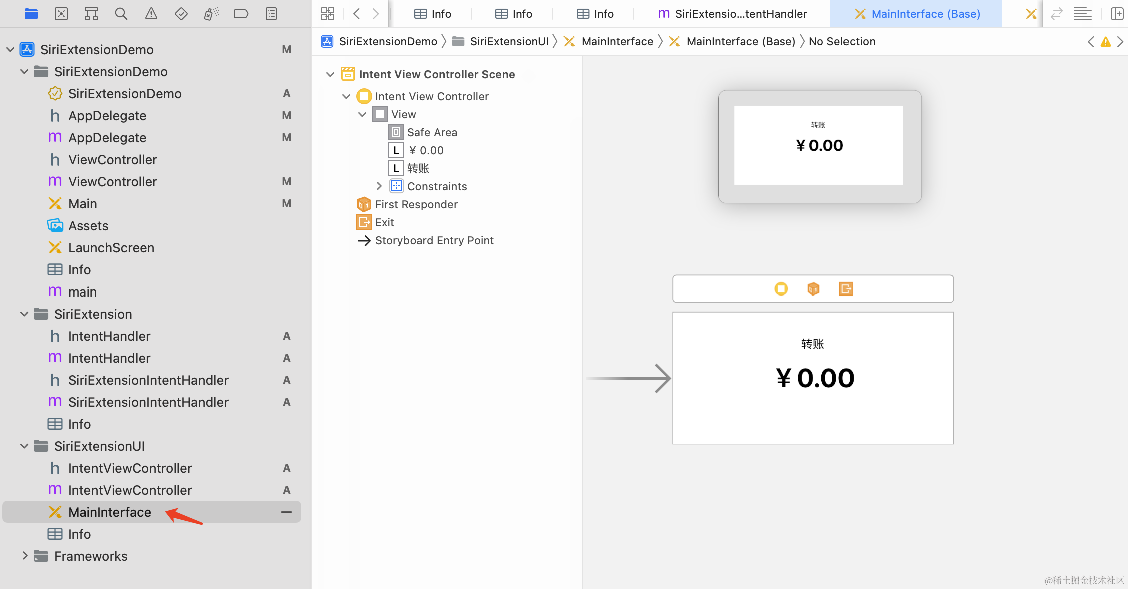 3.1 首先编写SiriExtensionUI --> MainInterface.storyboard的UI界面