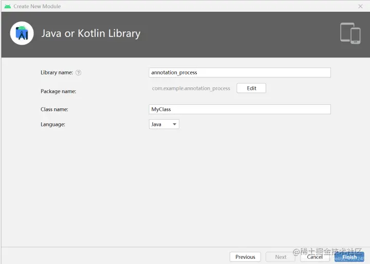 (2)创建第二个java library取名为annotation_process,故名思议此module是存放注解处理器。
