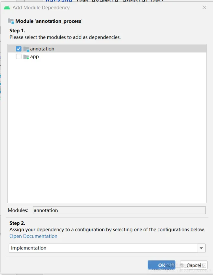 anontation_process依赖annotation。从此处可以说明为什么annotation和annotation_process必须定义为java library,android工程可以依赖java工程,但反之不行。