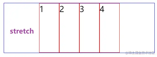 - stretch(是默认值,没有设置高度或者宽度情况下,则在侧轴拉伸项目)