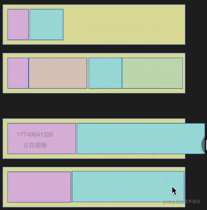 子项实际尺寸 = 该子项基准尺寸 +(容器空间 - 所以子项基准尺寸之和)* 该子项 flex-grow 、 所有子项 flex-grow 之和