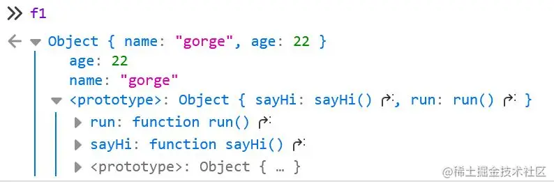 而 f1 是 Person 函数返回的对象,即 f1 是 Person 对象