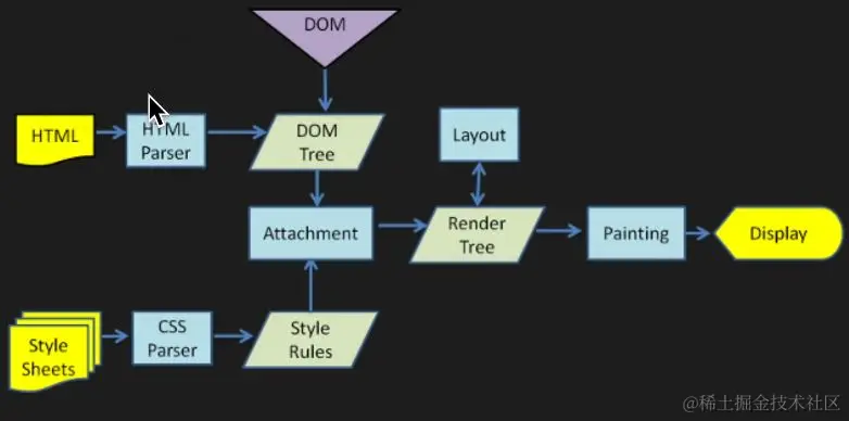 - HTML标签解析完毕后,构建DOM树。CSS加载完毕后,构建CSSOM树,合并计算得到渲染树,渲染绘制