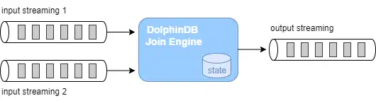 流计算连接引擎是 DolphinDB 中对数据流进行实时关联的计算模块,可以理解为一个设置了关联规则的计算黑盒,输入为2条数据流,输出为1条数据流,引擎内部会自动维护计算状态。