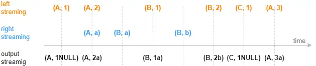 - 规则一:以数据注入引擎时的系统时间为时序标准,则每一条左表记录注入引擎时立刻关联并输出;