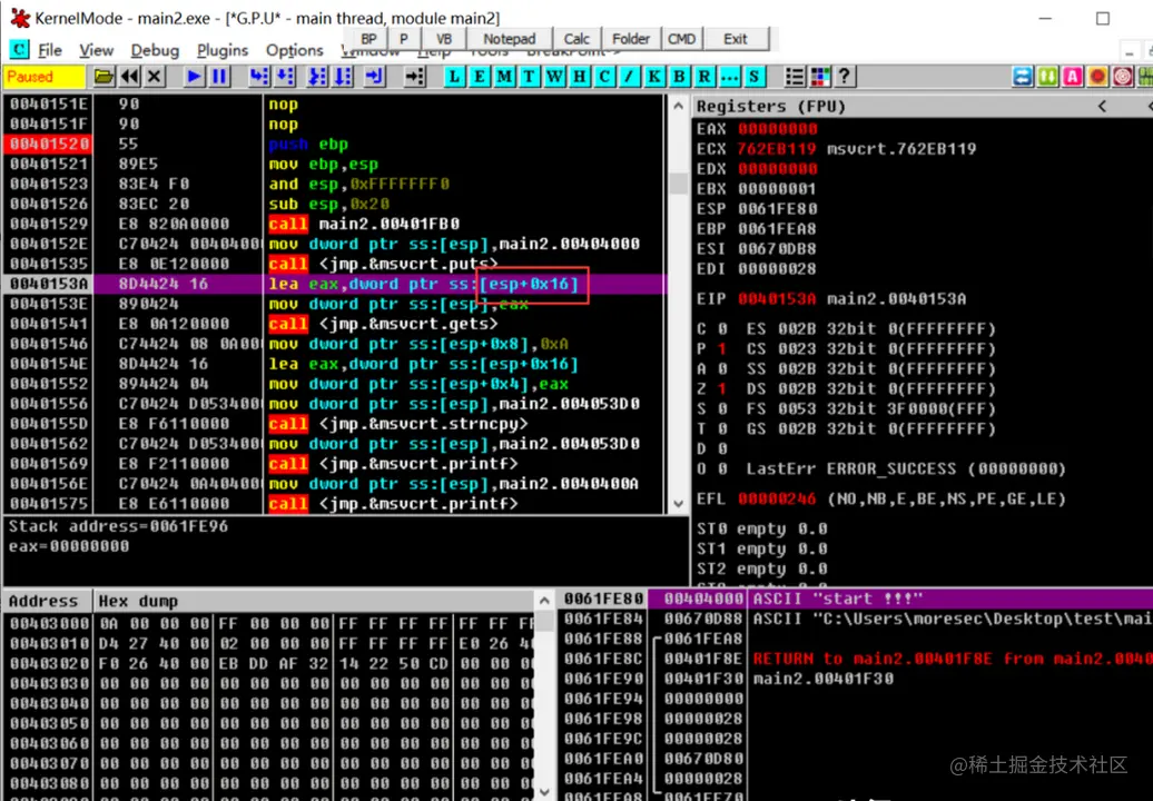 0x804858c <main+95>: lea eax,[esp+0x1c]