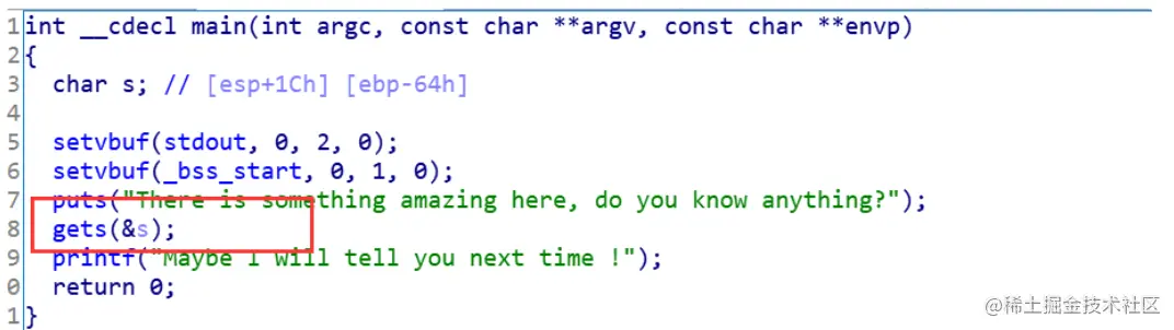 在IDA中能够发现两点:一、存在栈溢出 二、能利用写入/bin/sh进行getshell