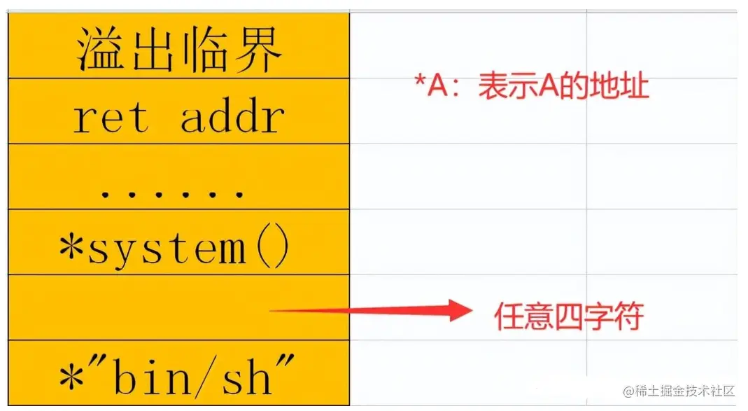 上面已经提到了,我们只要可以执行类似system(“/bin/sh”)的函数即可获取shell,在存在溢出的程序中我们在一般怎么去执行此函数呢?大致可以分为三类:一、"/bin/sh"字符串和system函数都可以在程序找到 二、二者其一找不到(一般为"/bin/sh"字符串找不到) 三、二者都没有 无论是哪一种情况,我们需要找到"/bin/sh"字符串和system()函数,并且堆栈位置如下:
