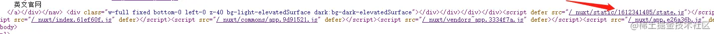 求问nuxt如何将页面window._nuxt_提取出来? 揣着一份梦想和九份坚强 2023-02-21 330 阅读1分钟 因为种种原因吧,就是想提取出来,请问大神们 如何像官网这样,能提取出来?并未看到官网说明相关的文档啊 注:里面保存的是服务端渲染出来的数据,而且vuex登录态等,肯定是不能把window._nuxt_删除的