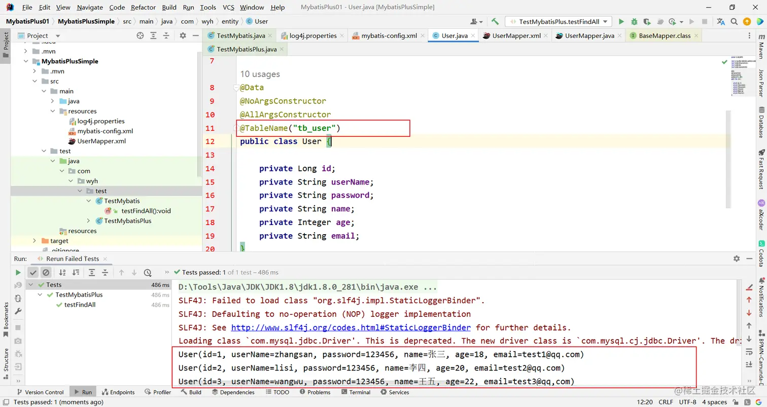 Mybatis+MybatisPlus实现查询User