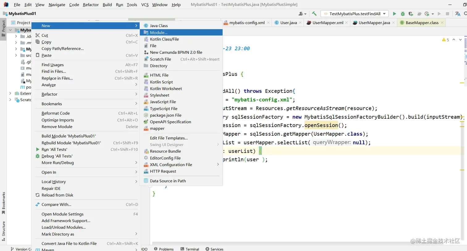 第一步,将UserMapper继承BaseMapper,将拥有了BaseMapper中的所有方法: