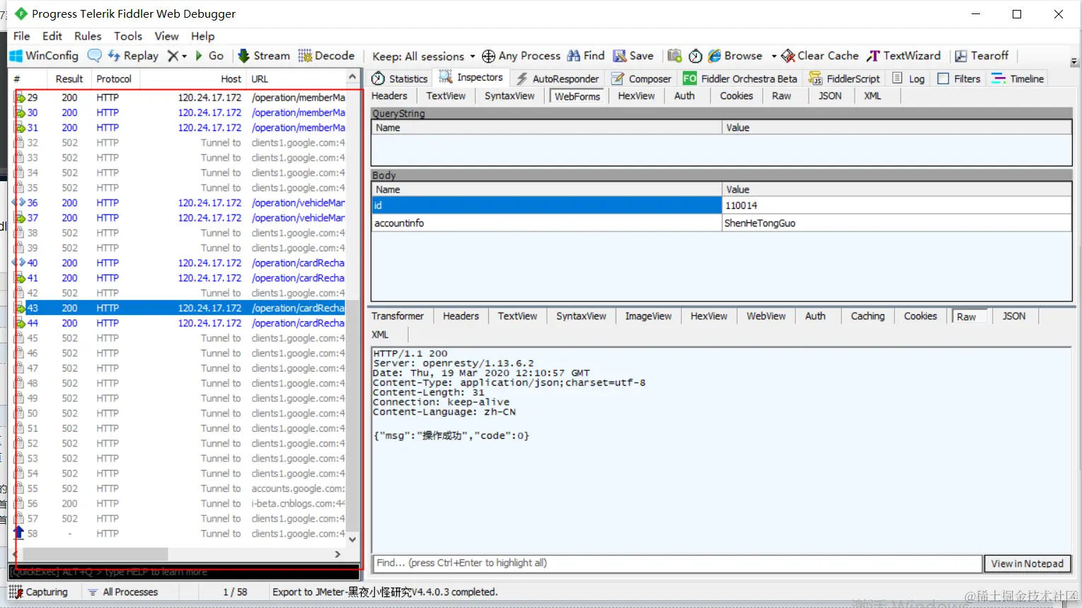 3、进行fiddler抓包后导出jmx格式,在jmeter中打开后进行优化,抓包后选择对应的url进行备注,(选中url按M键备注)