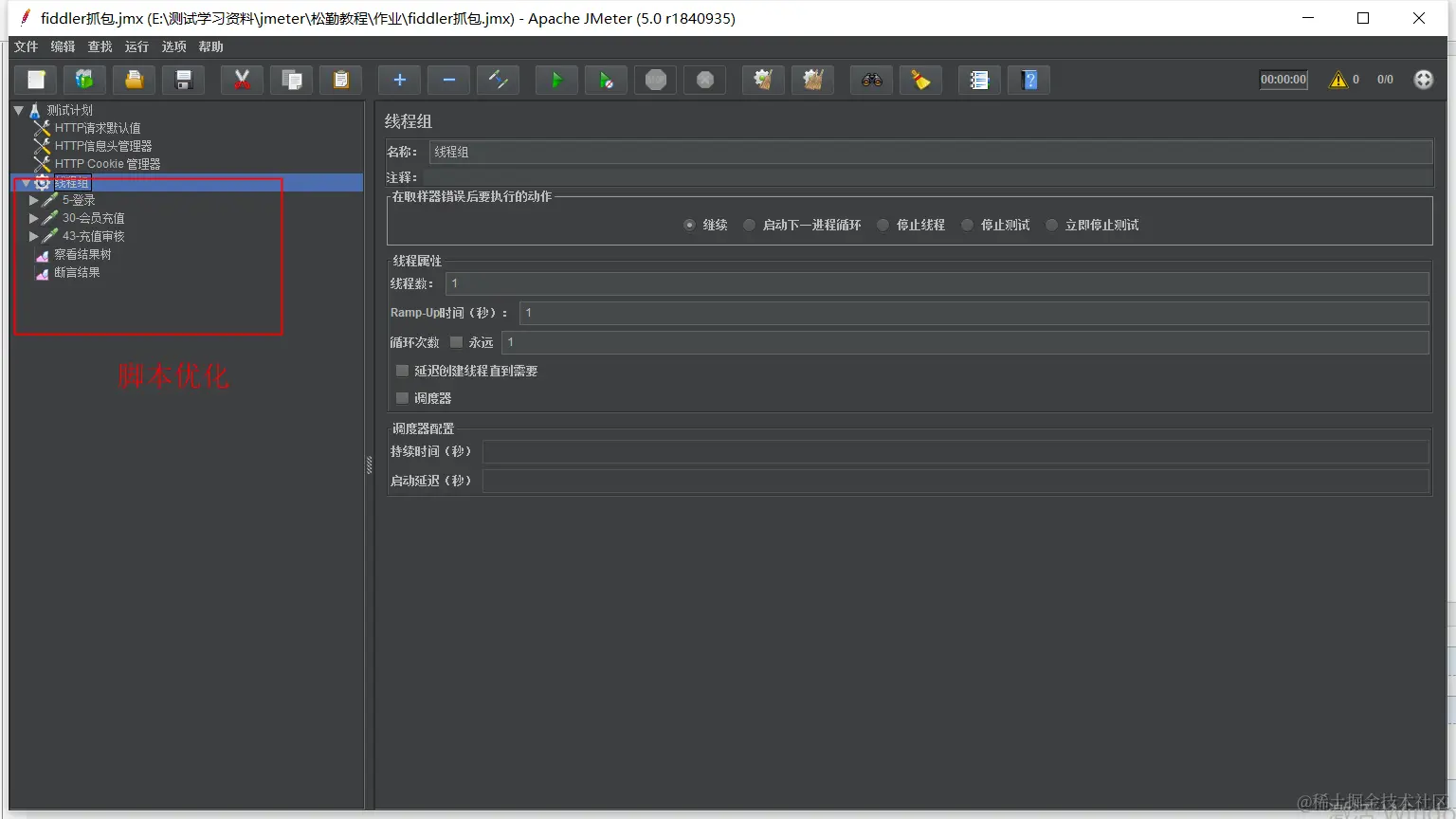 在jmeter中打开导出的文件,可以看到对应的备注url,进行录制脚本优化