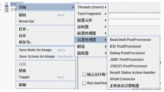 后置处理器是用于对Sampler 发出请求后得到的服务器响应进行处理。一般用来提取响应中的特定数据(类似LoadRunner测试工具中的关联概念)。例如,XPath Extractor 则可以用于提取响应数据中通过给定XPath 值获得的数据;正则表达式提取器,则可以提取响应数据中通过正则表达式获得的数据。