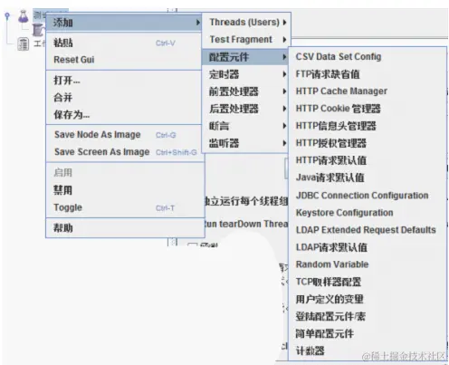配置元件(config element)用于提供对静态数据配置的支持。CSV Data Set config 可以将本地数据文件形成数据池 (Data Pool),而对应于HTTP Request Sampler和 TCP Request Sampler等类型的配制无件则可以修改 Sampler的默认数据。