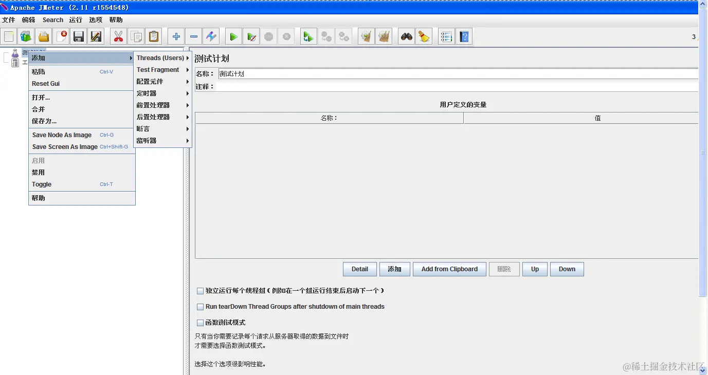 1、Test Plan (测试计划):用来描述一个性能测试,包含与本次性能测试所有相关的功能。也就说本的性能测试的所有内容是于基于一个计划的。