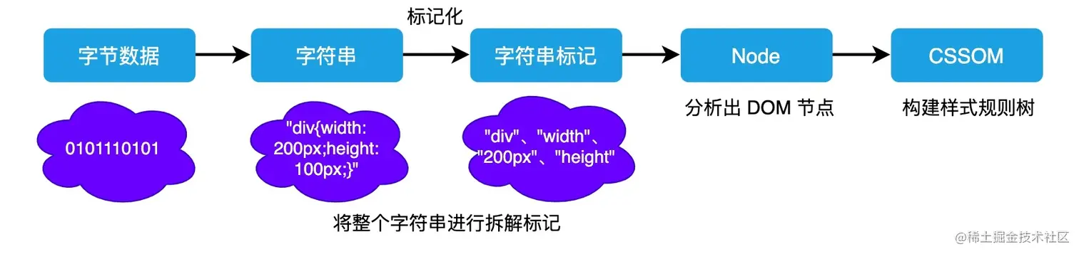 将 CSS 从字节数据转换为 CSSOM 这一过程其实是很消耗资源的。因为样式你可以自行设置给某个节点,也可以通过继承获得。在这一过程中,浏览器需要递归 CSSOM 树,然后确定具体的元素到底是什么样式。
